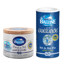 La Baleine coarse sea salt is used mainly for cooking: in pinches to salt cooking water and season dishes or for making meat and fish dishes in a salt crust. It may also be used in a grinder to season dishes at the table.